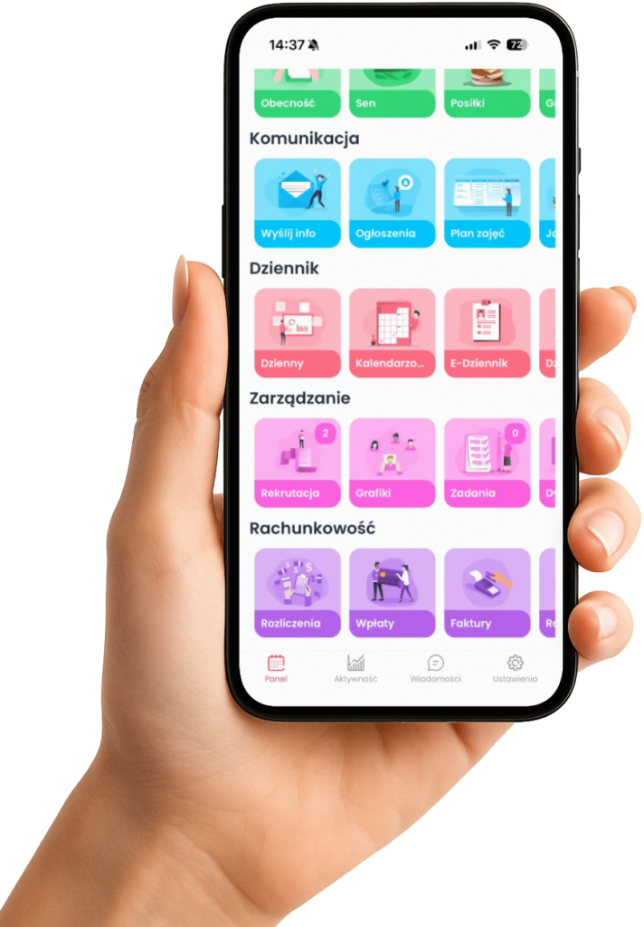 Szanujemy Twój czas i spokój. Dlatego korzystamy z dedykowanej aplikacji, dzięki której masz przedszkole w swoim telefonie 24/7.